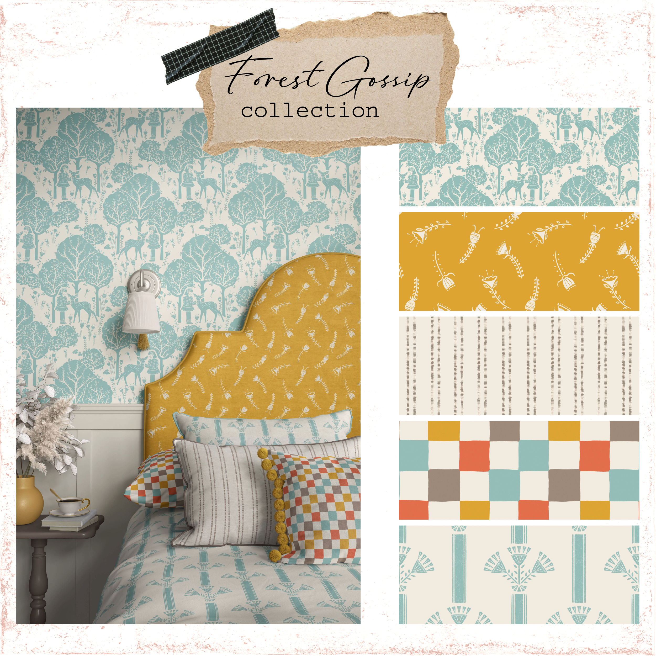 This portfolio presents a selection of surface pattern designs inspired by traditional crafts such as linocut and block printing, reimagined through whimsical, narrative-led storytelling.